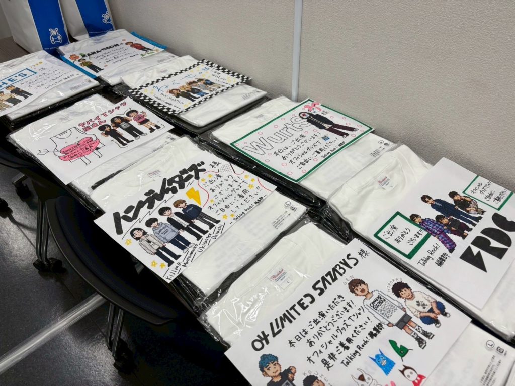 その下にあるのは本フェスのオフィシャルTシャツで、白は読者プレゼント用にサインを依頼(Talking Rock!25年9月号に掲載しています! どしどしご応募くださいね!)。黒はメンバーのみなさんにプレゼントしました!